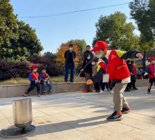 随着欢快的音乐响起,一条条彩龙在空中飞舞,陀螺被抽得啪啪作响,现场掌声欢呼声一片……小记者一边观看民俗文化展演,一边按捺不住激动的心情想要上前体验。学打鞭、抽陀螺、舞彩龙,大家不惧冬日严寒,个个精神抖擞,在运动中发扬并传承中国体育精神。