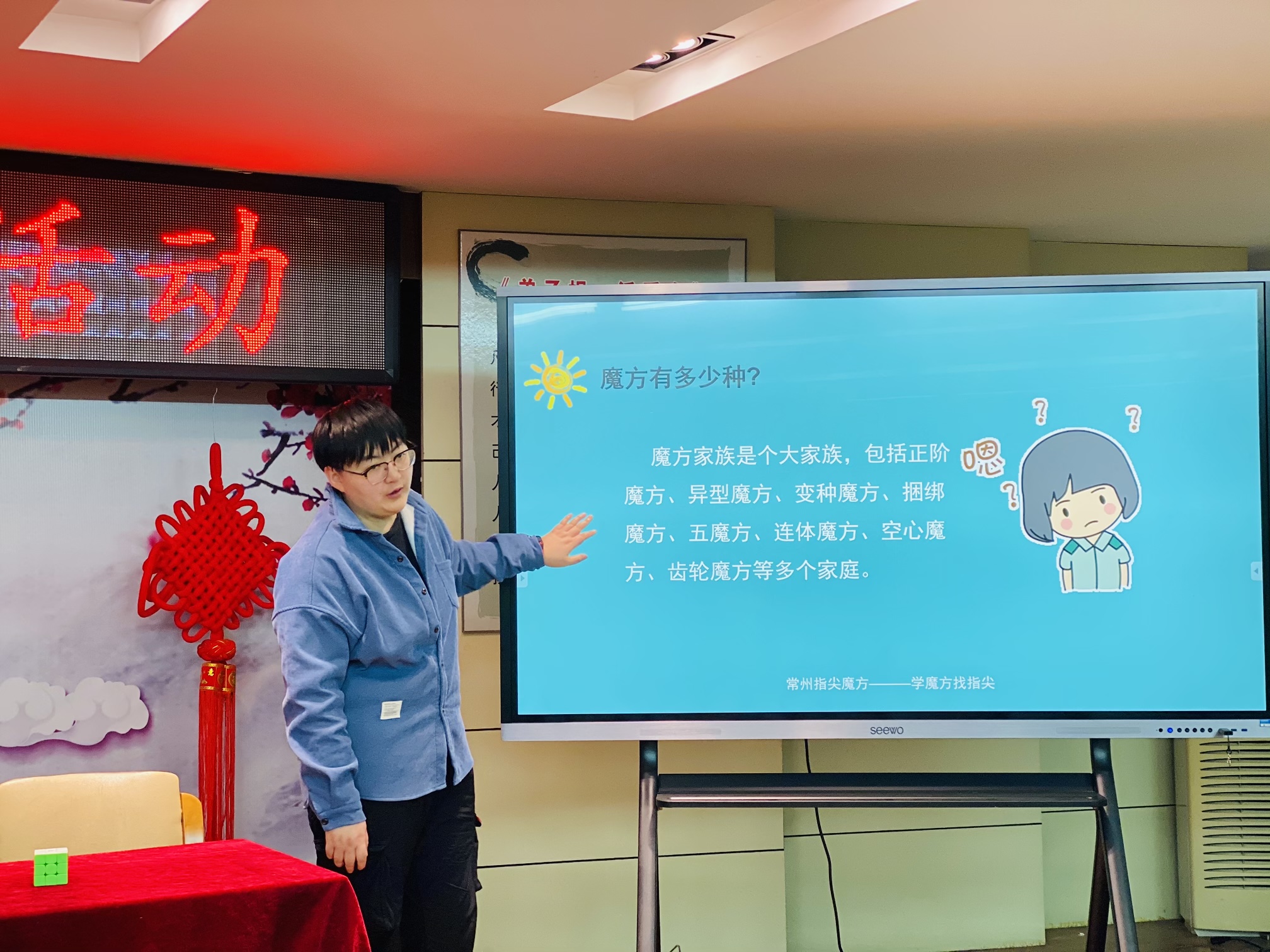 魔方体验活动开始啦!指尖魔方的枪老师为小记者讲解魔方相关知识,带大家走进神奇的智力游戏世界。