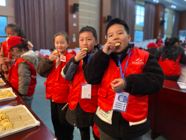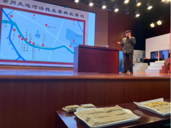 八仙糕、知音玫瑰饼、红楼一口酥……1月5日下午,在奔牛实验小学一楼报告厅内,一份份选料考究、小巧精致的运河船点展示在桌面托盘内,静静地向小记者们传递着常州传统美食的香甜,也在诉说着常州悠久的运河文化。