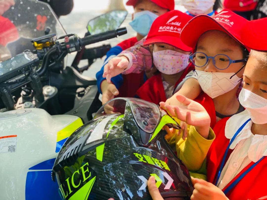 深入了解交警工作——参观警用摩托车。来自天宁交警大队红梅中队铁骑朱怡飞为大家详细介绍了骑行服的作用以及警用摩托车的各项先进功能。