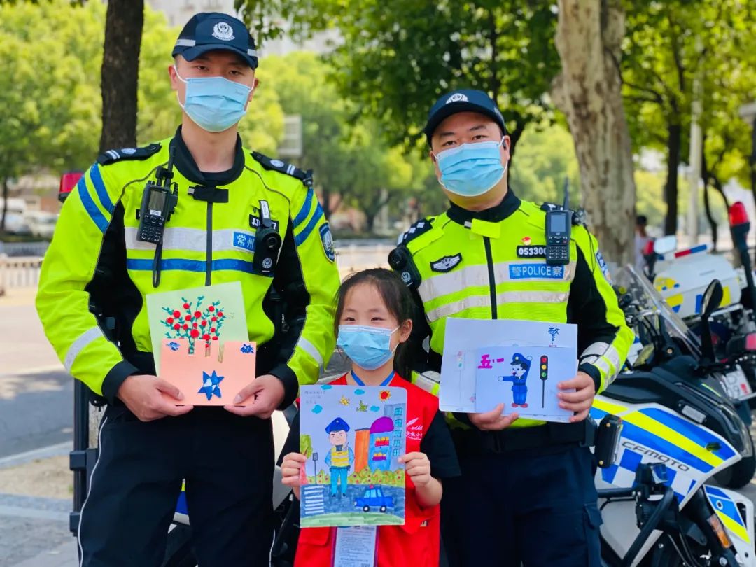 活动最后,小记者们用自己独特的方式感谢交警叔叔和阿姨们。不管是一句“交警叔叔,您辛苦了!”,还是一幅可爱的绘画亦或者一个暖暖的拥抱,都饱含了大家对交警这一职业深深的敬意和感谢。