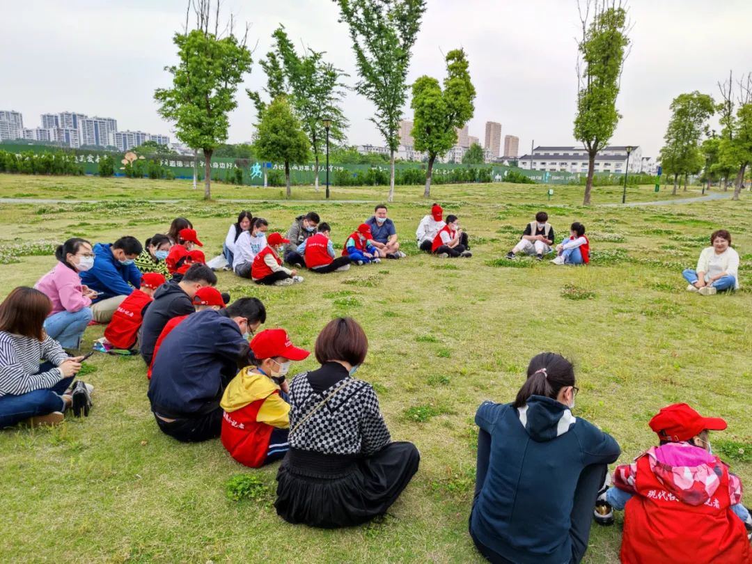 在这个鸟语花香的日子里,大小朋友们与胡老师围坐在绿地上,一同学习探讨和家庭相关的知识。