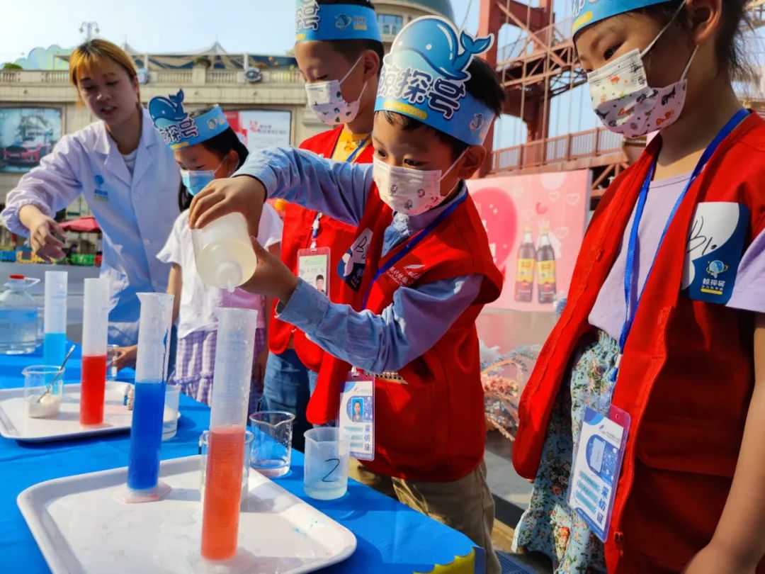惬意的夏日午后,小记者们围坐在环球港港口小镇童话般的风景里 ,鲸探号少儿科学院的老师们带领大家领略科学的魅力。