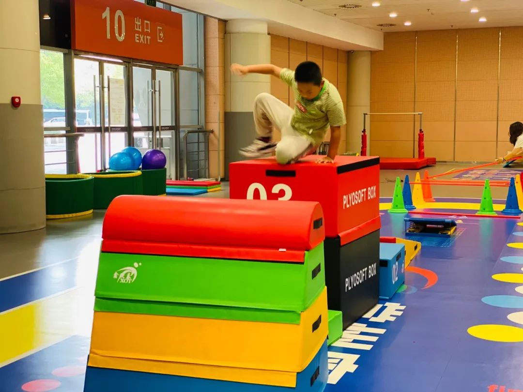 跳箱子,帮助小记者们获得更强的肌肉力量与灵敏性,更好的控制身体。