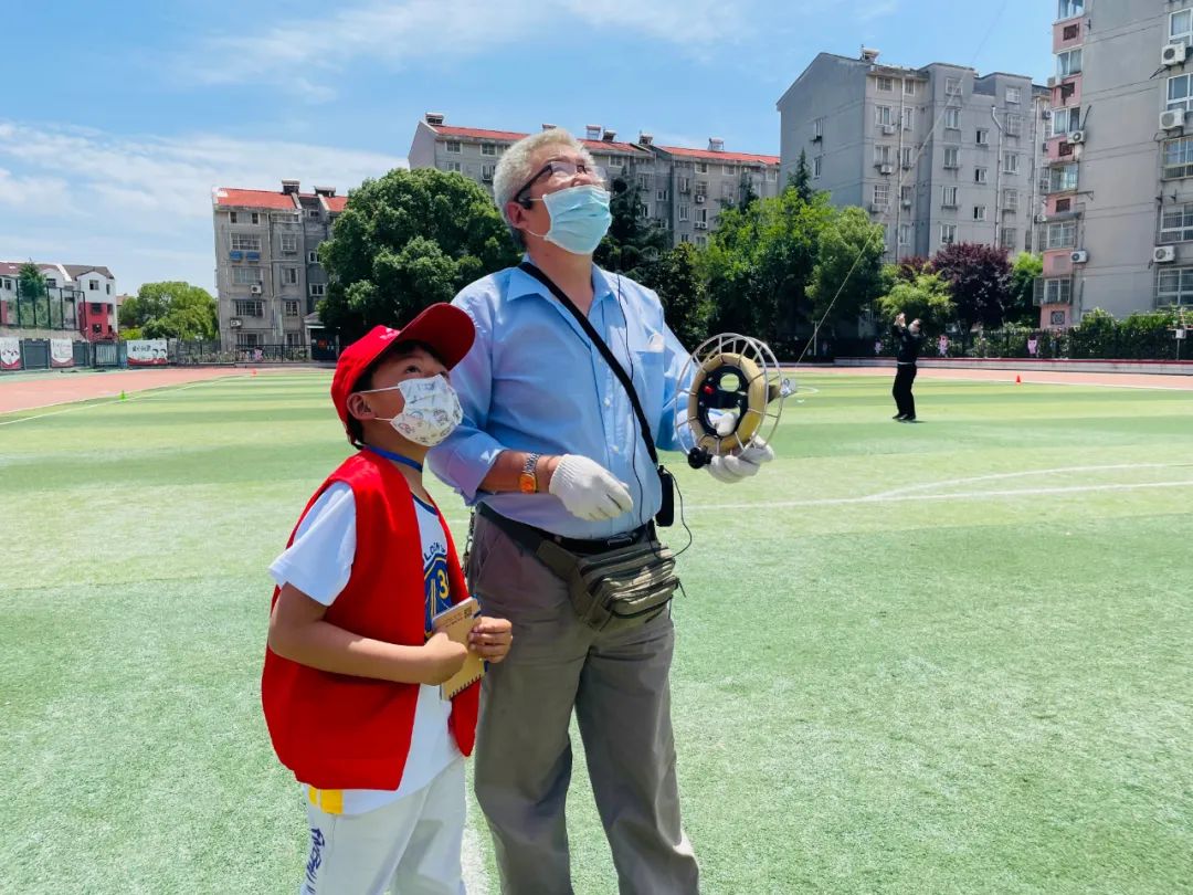 操场上,人头攒动,闻老师早已做好了准备,戴上手套,拿起细线盘,大家围着闻老师记录着放飞技巧。