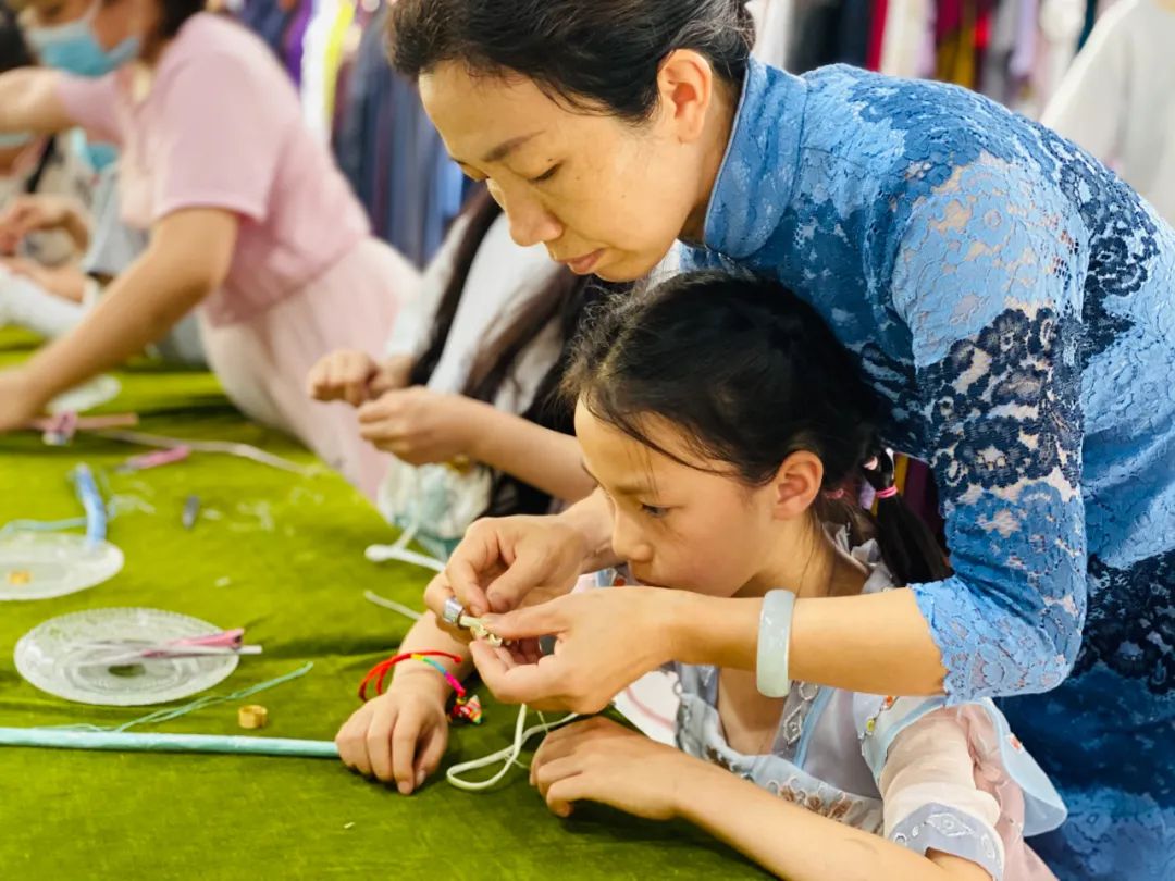 姜老师告诉大家,来这里学徒的新人都要先做半年的盘扣,每天从早到晚,只做这样一件事,之后才能接触其他技艺。看似简单的制作步骤,小记者们花费了两个多小时,深深体会到手工制作的不易。