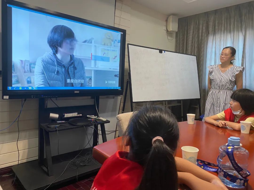 天爱儿童康复中心的老师带领大家参观校区并讲解自闭症儿童的相关知识。融合课堂中,小记者分别参与绘画、非洲鼓、披萨制作等相关课程。