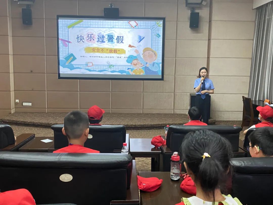 最后,“繁星”未检团队检察官助理周非凡给小记者开展了“快乐过暑假,安全不放假”主题法治教育课,以图片、视频与法律法规解读相结合的方式,从拐骗拐卖、性侵犯和校园欺凌三个方面进行了详细讲解,就青少年如何加强自身安全、防范非法侵害等进行典型案例分享和说明,具有重要的警示意义。