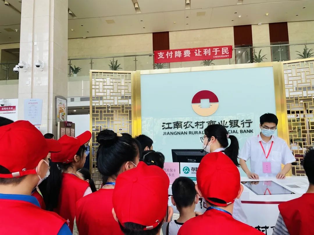 小记者们首先参观全国青年文明号——江南农村商业银行总行营业部,通过一台台电子机具,感受智能时代的便捷。