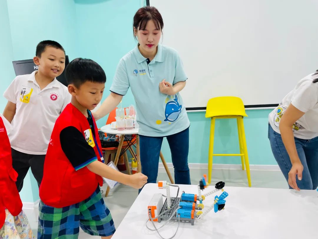老师带领小记者们先后体验了火山爆发、变色计、自动星星、牛奶旋涡、与机器人做游戏等项目,小记者们热情澎湃、积极参与,现场沸腾一片。