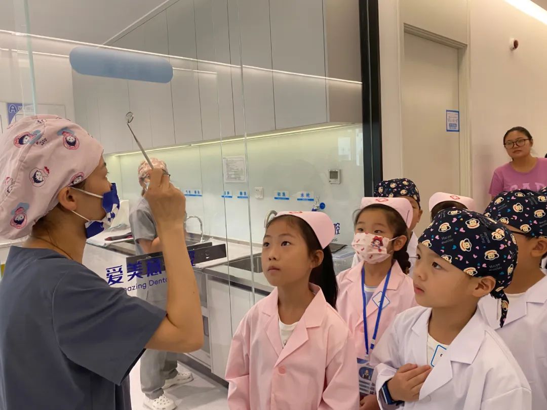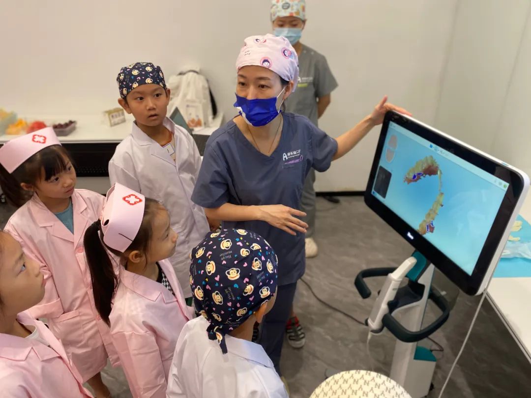 活动中,爱美意口腔的黄玉宁老师向小记者介绍如何成为一名合法且专业的牙医,如何预防龋齿,如何正确刷牙,如何进行就诊前的器械消毒与口腔镜实操……小记者听讲认真,互动积极。