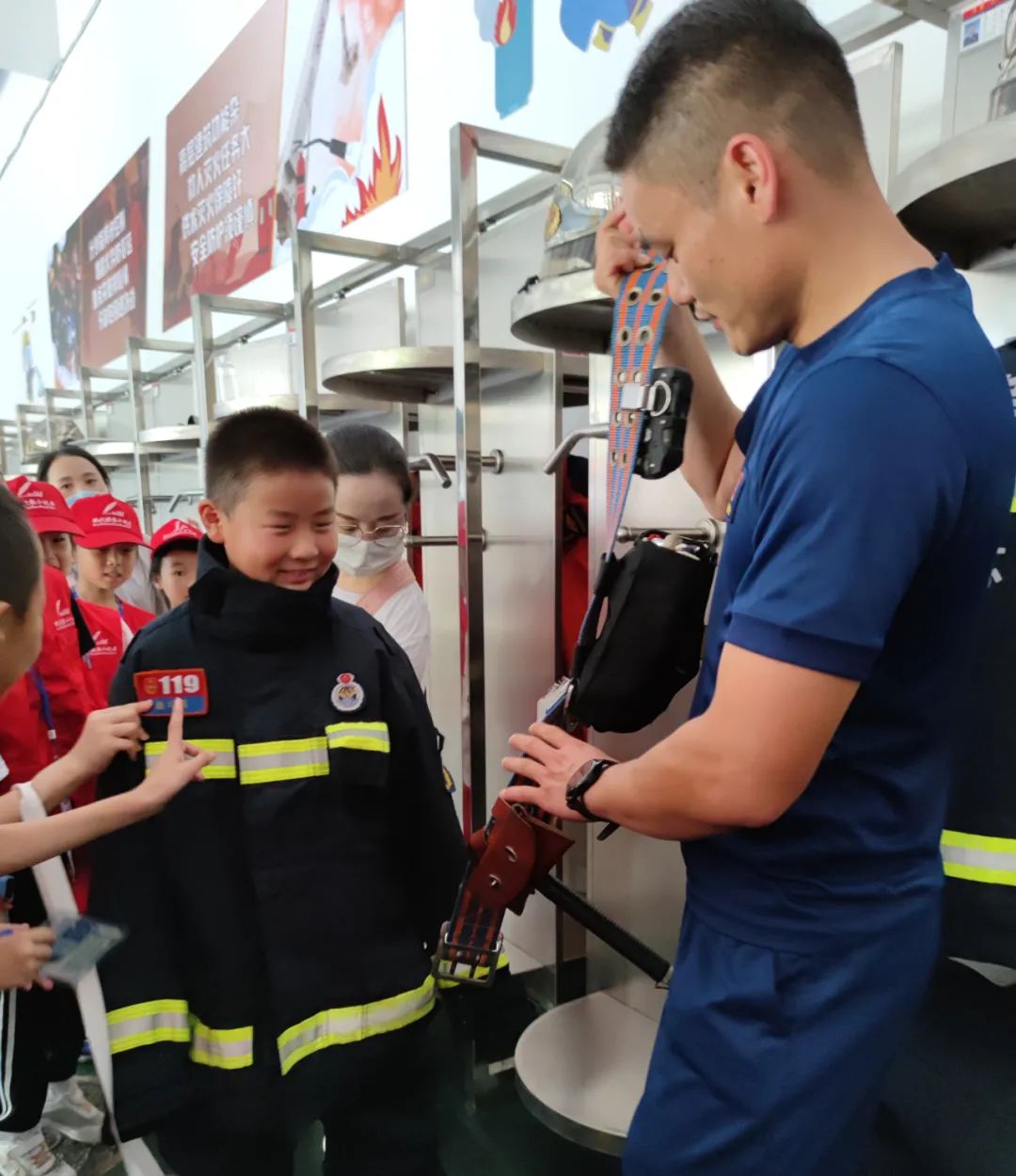 通过实物展览及文图讲解,小记者们认识了不少的消防救援器材,学习了遇到火情、险情时简单实用的自护自救方法。