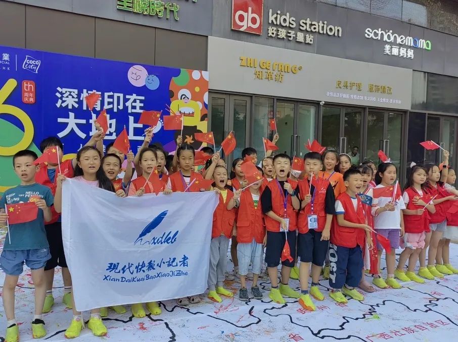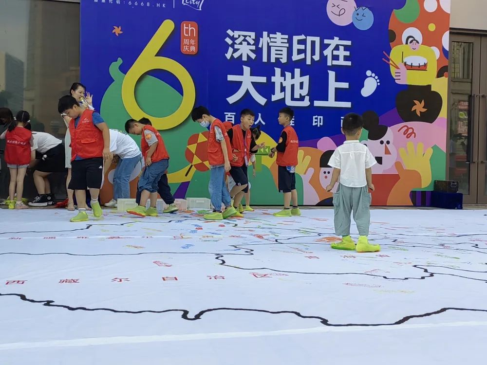 9月11日下午,现代快报小记者工作室携手星河COCOCity,邀请采菱小学、湖塘桥实验小学、常大附小、北环小学、汤庄桥小学、星河实验小学、横林实验小学等八所学校的小记者们,用鞋印画的方式,在巨幅中国地图上走遍祖国山河,一次逛遍34个省级行政区!