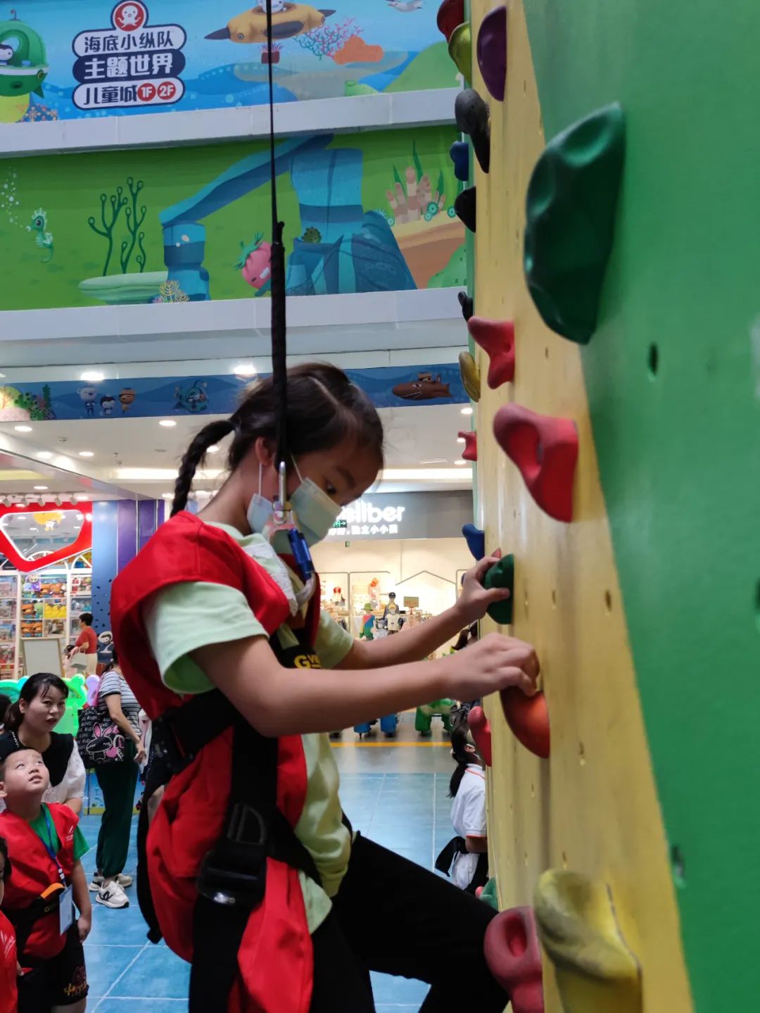 攀岩教练为大家讲解攀岩运动的注意事项之后,小记者们依次开展体验活动,领略攀岩运动的独特魅力。