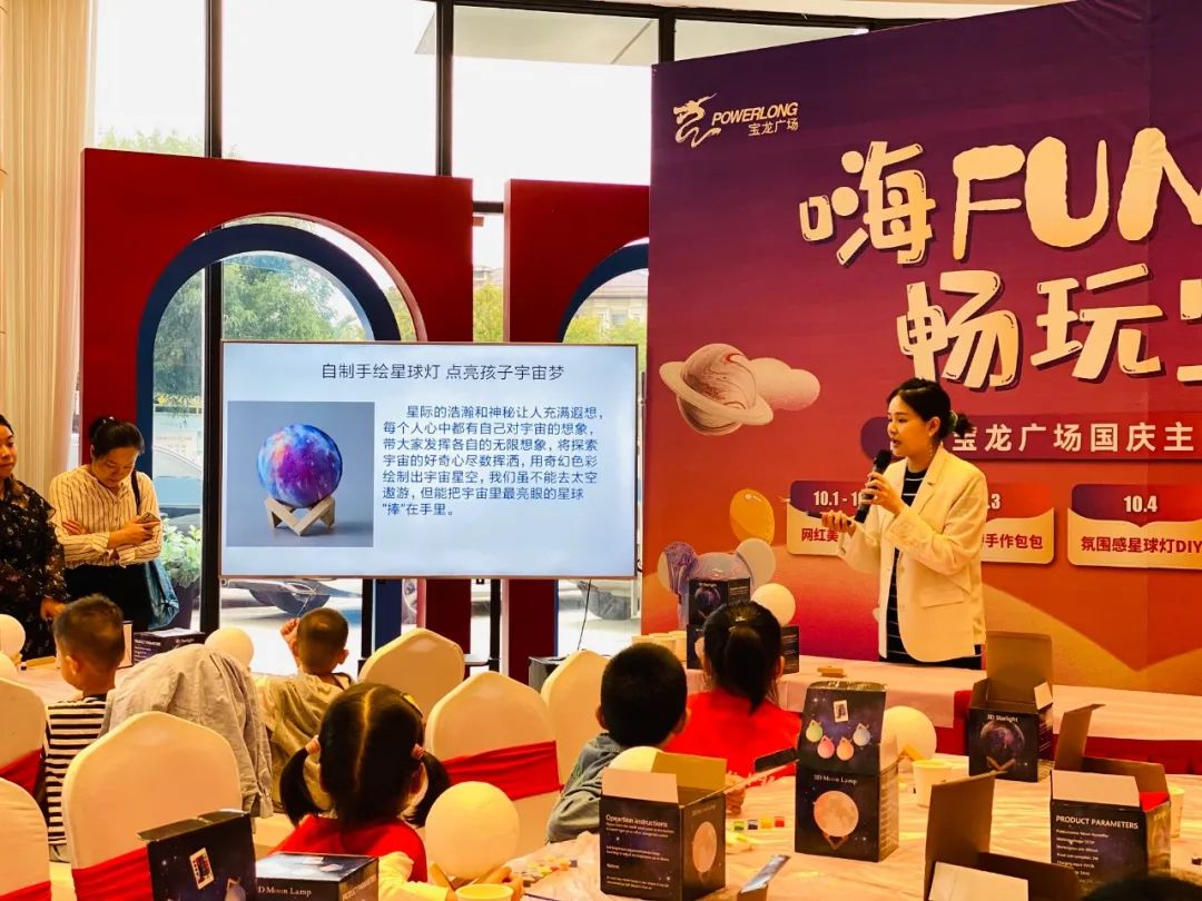 创作随心,快乐随性,小记者们发挥丰富想象力,用画笔在星球灯上画出属于自己的“星球”,用绚丽的色彩表达内心情感。