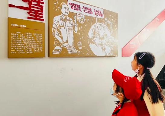 科普课堂开始前,老师带领小记者们参观中国航天名人墙,了解中国航天事业的发展历史。大家感受到了航天科学家们艰苦奋斗、勇于探索、开拓创新的航天精神。