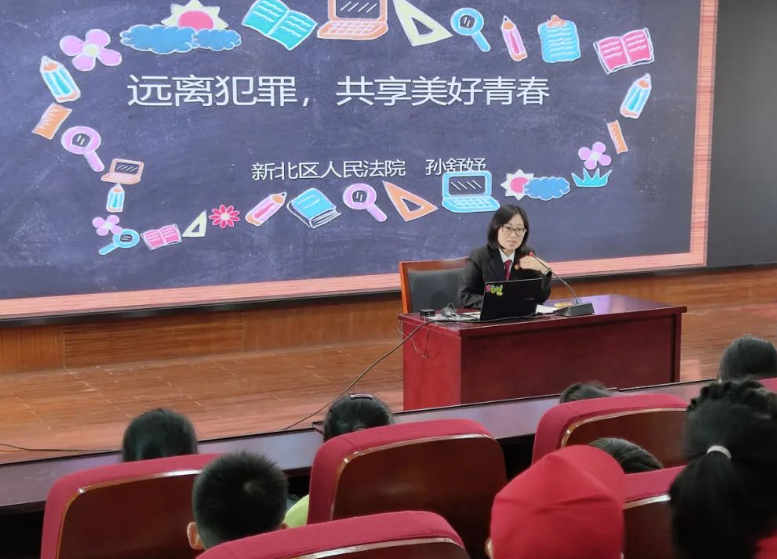 为进一步树立青少年法制观念,增强青少年法律意识,普及未成年人文明健康上网、远离网络违法犯罪的常识,11月10日中午,新北区人民法院立案庭法官孙舒妤走进孝都小学,以“远离犯罪,共享美好青春”为主题,为小记者们带来了一堂生动有趣的专题法制课。