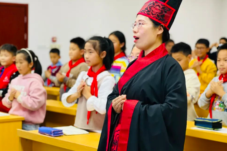 为进一步传承国学经典文化,学习中国传统礼仪,11月11日下午,现代快报小记者工作室邀请青韵汉服体验馆国学礼仪老师走进郑陆实验学校,开展“诵经典 习礼仪”活动,带领小记者们诵读国学经典,学习传统礼仪,与经典为友,与圣贤相伴。