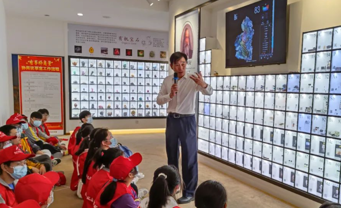 通过张馆长及科普老师的生动讲解、图文演示及趣味实验,结合参观珍稀独特的馆藏矿石标本,小记者们系统学习了元素科学知识,懂得了是元素构成了我们这个美丽的世界。