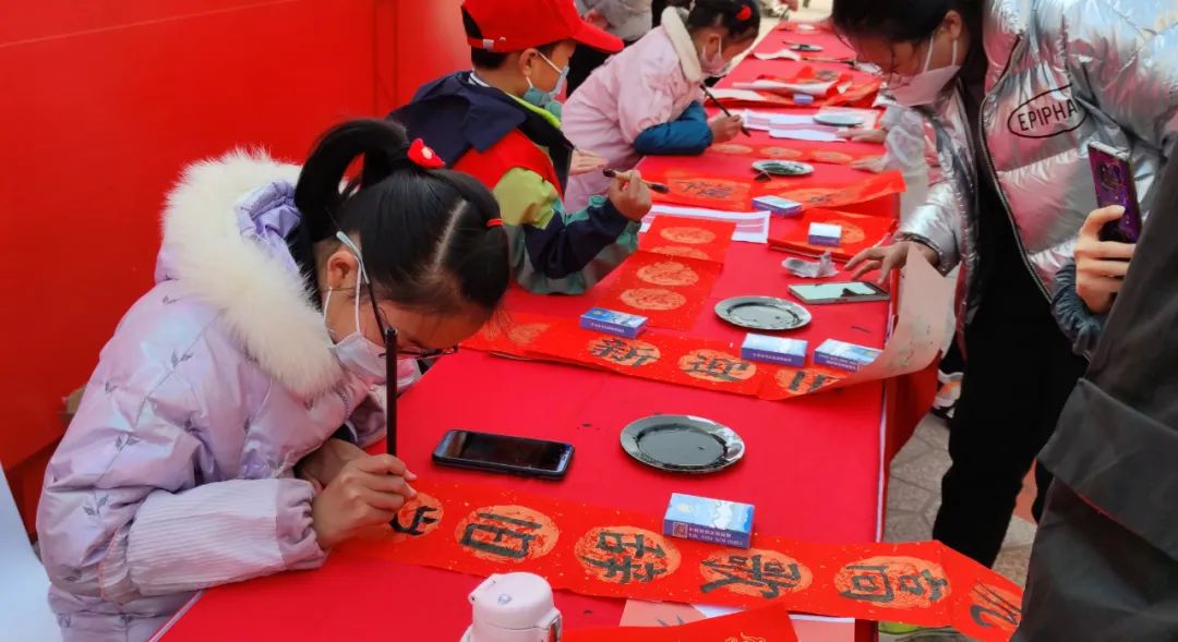 小记者们端坐在桌子前,一展身手。有的小记者现场挥毫,写福字写春联,送给现场市民,迎来一片点赞。