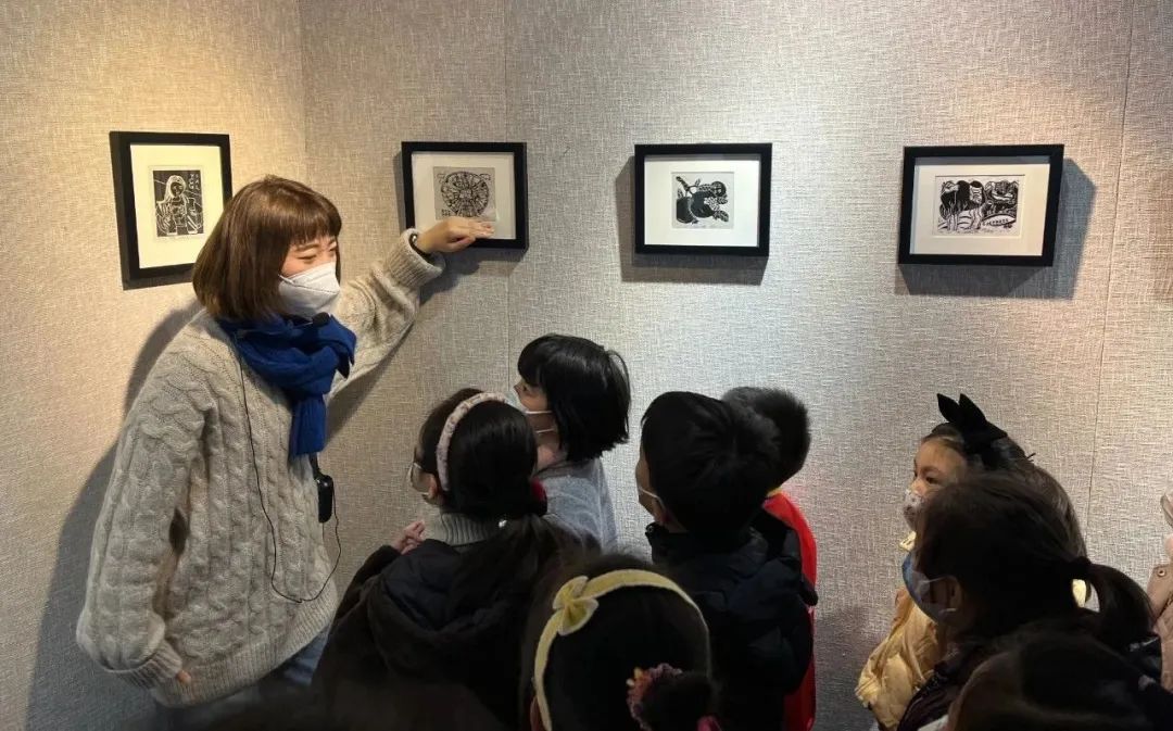 通过谢老师的介绍,小记者们还了解到藏书票有多种不同的制作技法,分别是:凹版、凸版、平版和漏版,所用材料和艺术效果各异,表现出藏书票百花齐放的作品特点。