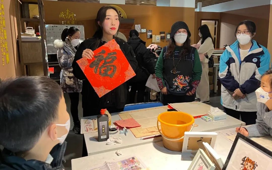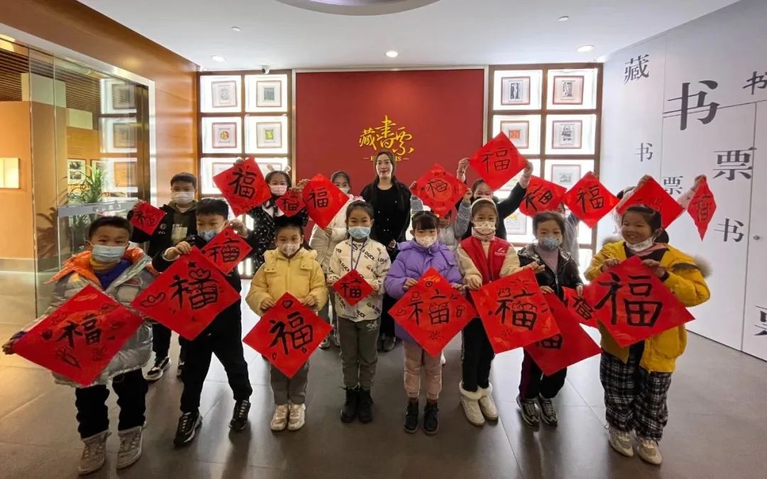 书法老师黄叶雯老师(常州市女子书协会员,主修楷书、隶书、篆书书法,师从书法大家陈海良教授)带领小记者们共同书写福字。
