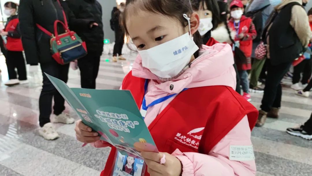 走进“龙城健康号”主题专列,小记者们除了学习中医养生、合理用药、爱眼护眼等10个不同主题的健康知识,更是鼓足勇气向来往市民进行健康科普。