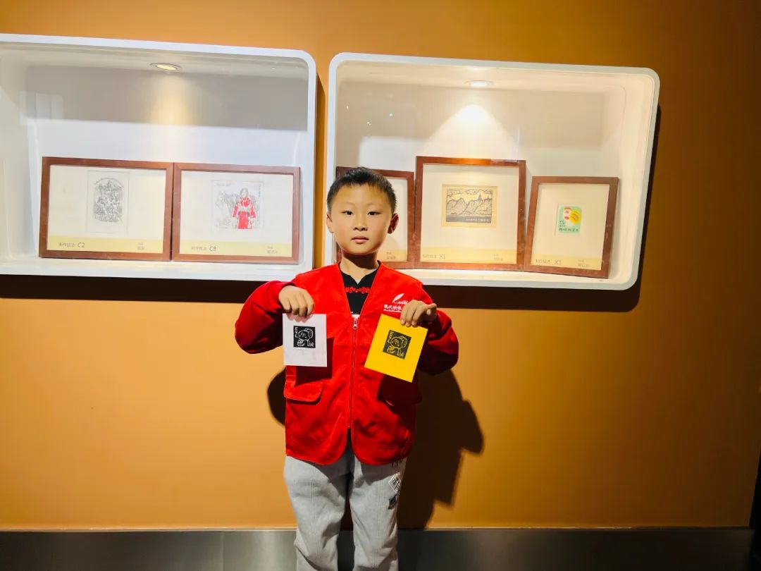制作过程中,小记者们在谢老师耐心细致教学下,从设计、描绘到雕刻,在到最后的拓印,很快就完成了兔年版画作品。