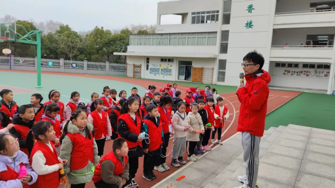 开合跳、双摇跳、交叉跳、俯卧撑跳……一根绳子,只要你想,就可以变幻跳出无数种花样,“哇……哇……好厉害”小记者们正欣赏唐一超老师(个人花样跳绳全国冠军)秀绳技……2月22日中午,快报小记者工作室邀请唐一超教练走进泰山小学,带领小记者们学习花式跳绳基本动作,感悟拼搏向上的体育精神。