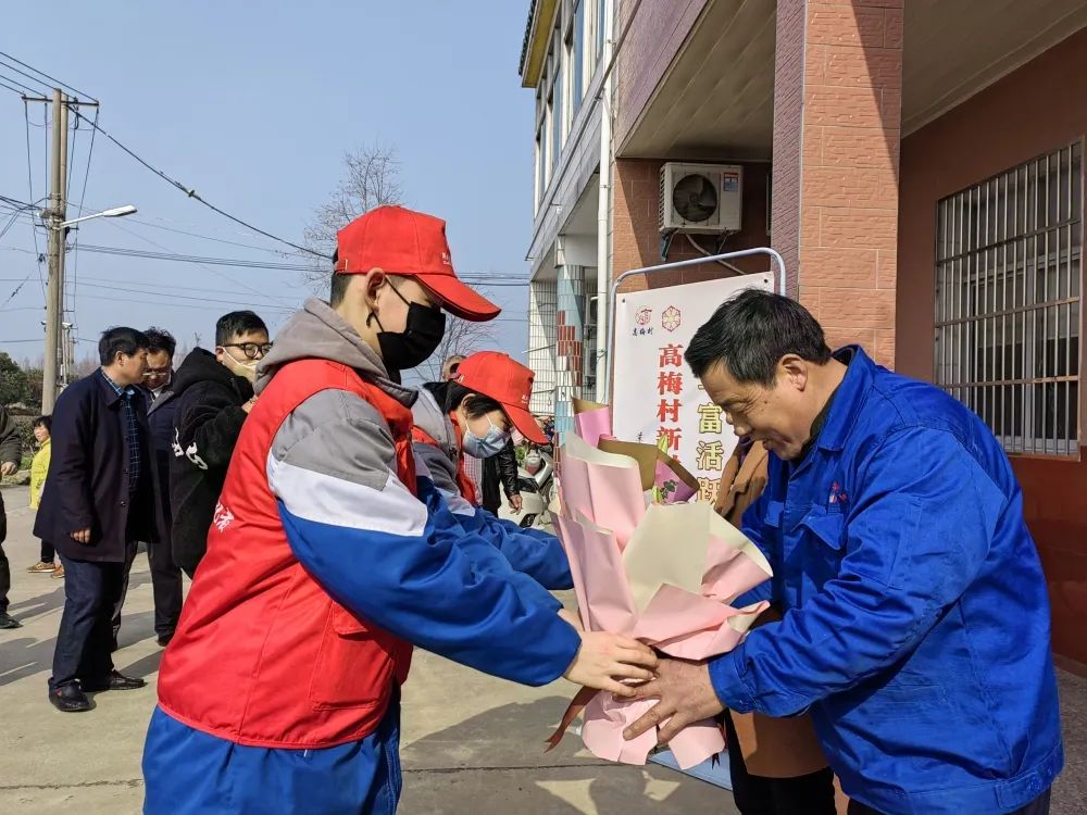 伴随着一路走来的敲锣打鼓声,报喜团为立功受奖军人家属送上鲜花、喜报,感谢他们为国家、为部队培养了优秀人才,为家乡争得荣誉。