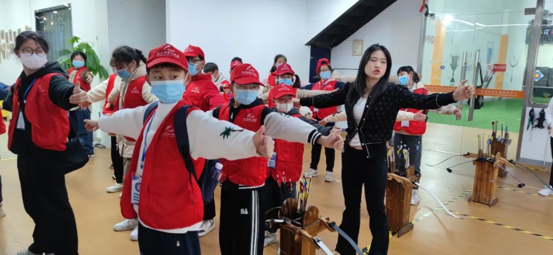 随后,在后羿射箭俱乐部的教练的指导下,小记者们开展了射箭体验,零距离感受弯弓搭箭的魅力。