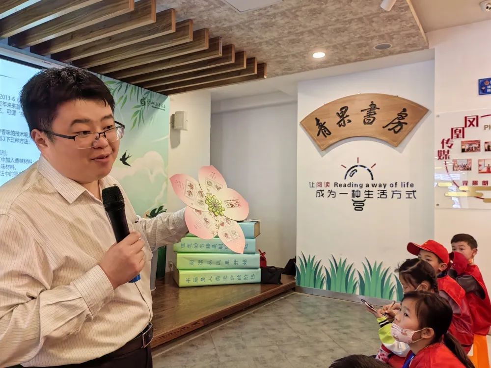 目前,中国已发行了很多花卉类型的邮票,成老师重点介绍了花卉邮票的由来和以“花卉邮票”为载体的中国外交故事,讲解了君子兰、牡丹花、菊花等花卉的独特意义。小记者们和成老师积极互动,活动现场气氛热烈。