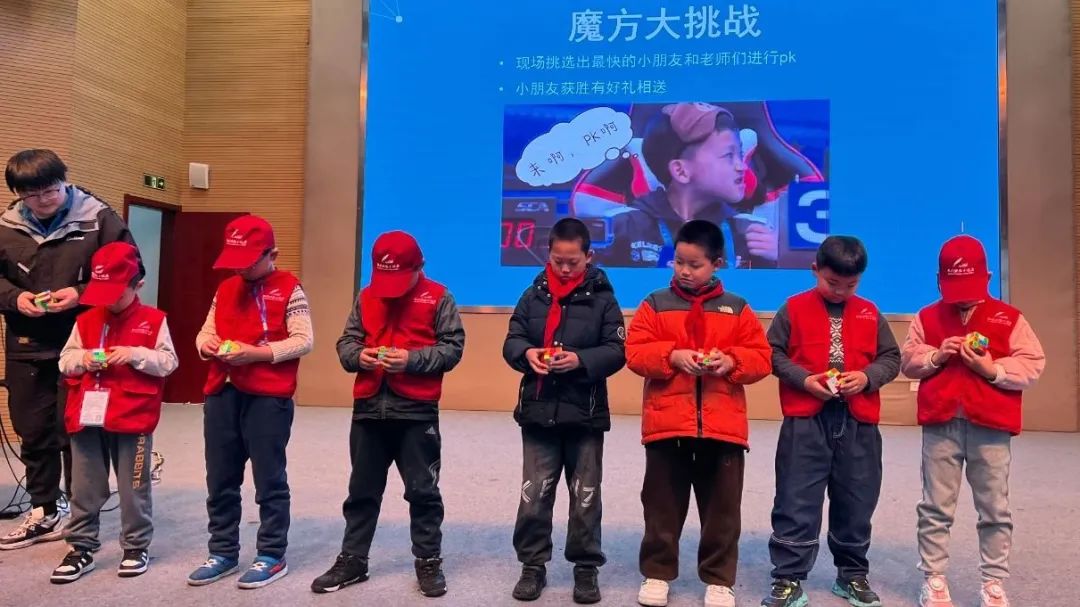 活动开始,指尖魔方的枪老师邀请了部分小记者上台挑战魔方还原。一分钟时间为限,小记者们争分夺秒,全场的焦点都在这些小记者手中的魔方上。虽然并没有人能在一分钟内挑战完成,但是挑战者的勇气赢得了全场的热烈掌声。