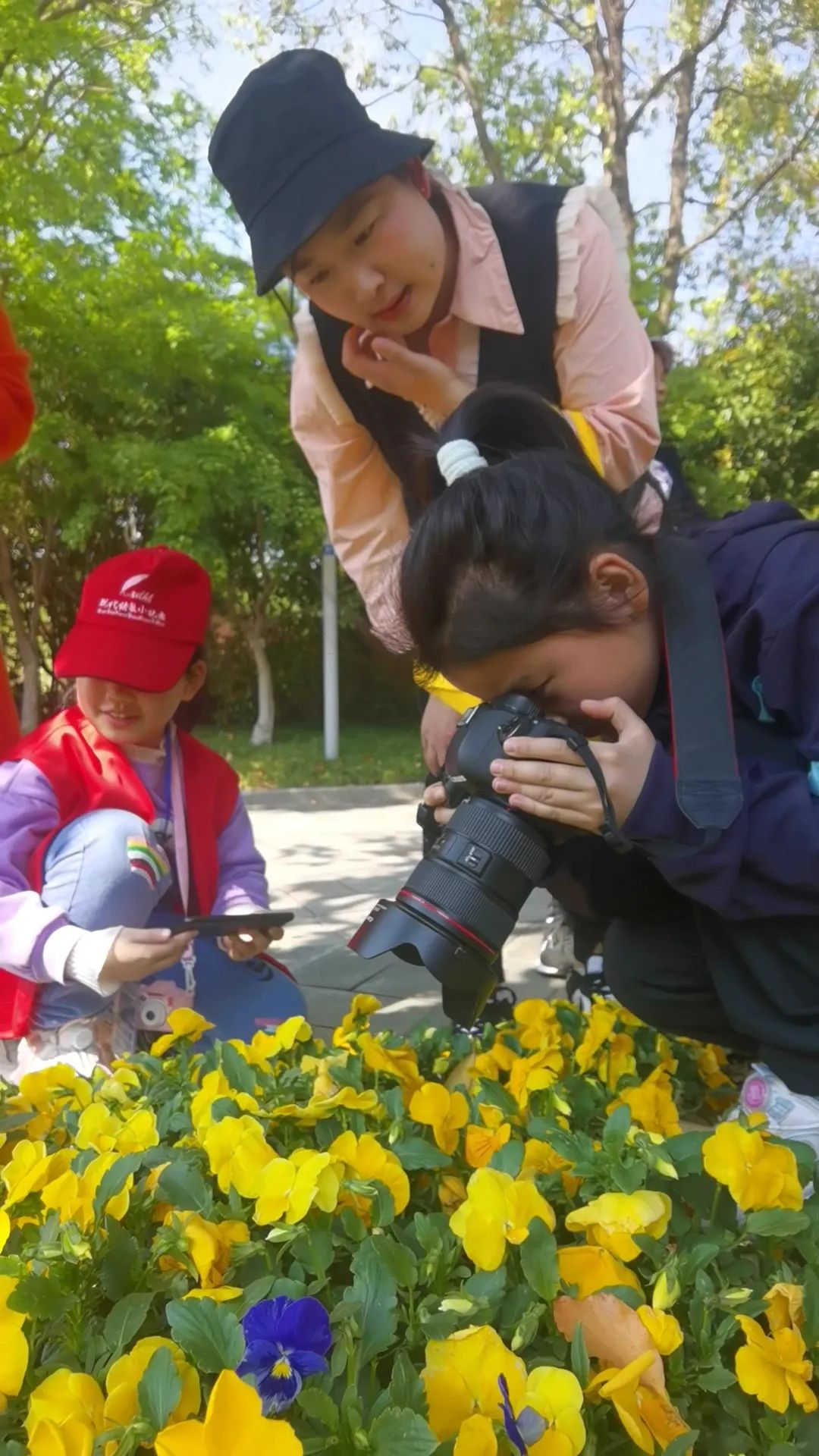 青枫公园内植物种类丰富,游人如织;仲春二月,蓝天上各式风筝竞逐。关于如何捕捉这些美景,摄影老师为小记者们普及了器材选择,构图用光等摄影知识。