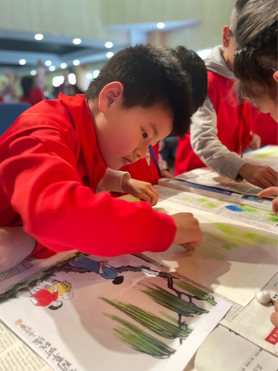 本次活动临摹的是中国著名现代书画家、文学大师丰子恺的春日风景漫画。小记者们学以致用,小组合作,开启炭精画初体验。
