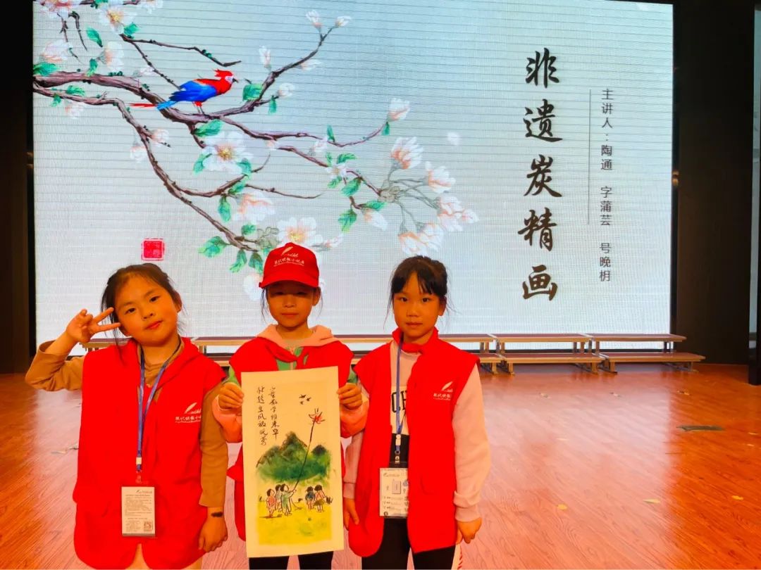陶老师为小记者们讲解炭精画文化的起源、历史与发展。小记者们用心记录、踊跃发言。