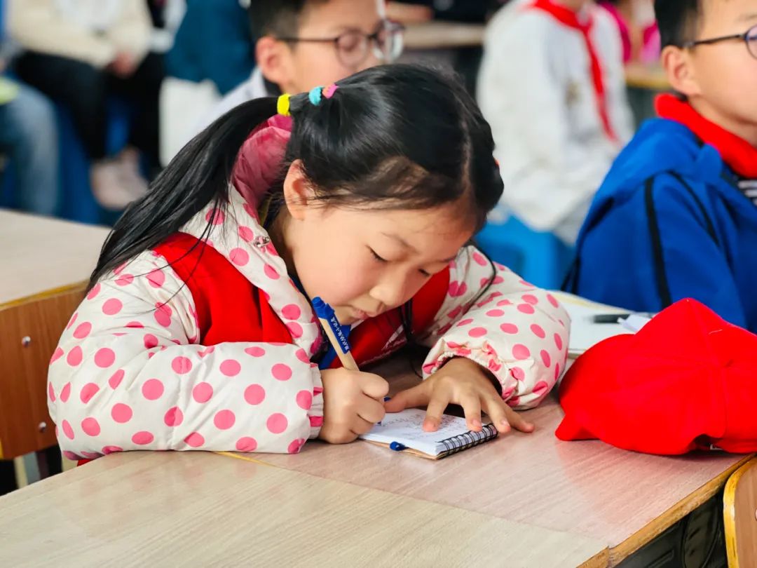 活动最后,马老师带领小记者们学习折叠红领巾。大家按照马老师教的方法,从抖灰开始、平铺、叠成长方形、找口袋……,最终完成对于红领巾的折叠。