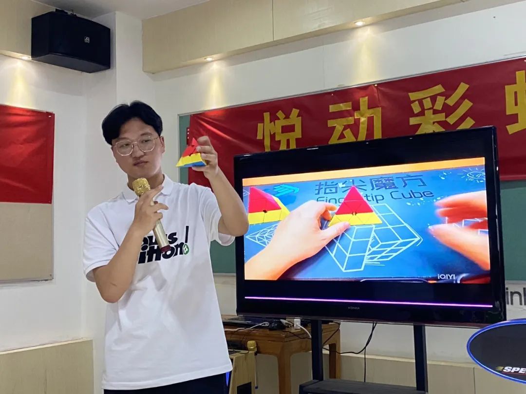 魔方是一种能在休闲放松中开发智力,提高空间思维能力的益智活动。常州魔方高手为小记者现场演示专业的魔方还原技巧和竞速玩法,全场小记者的目光紧紧跟着魔方不停跃动。