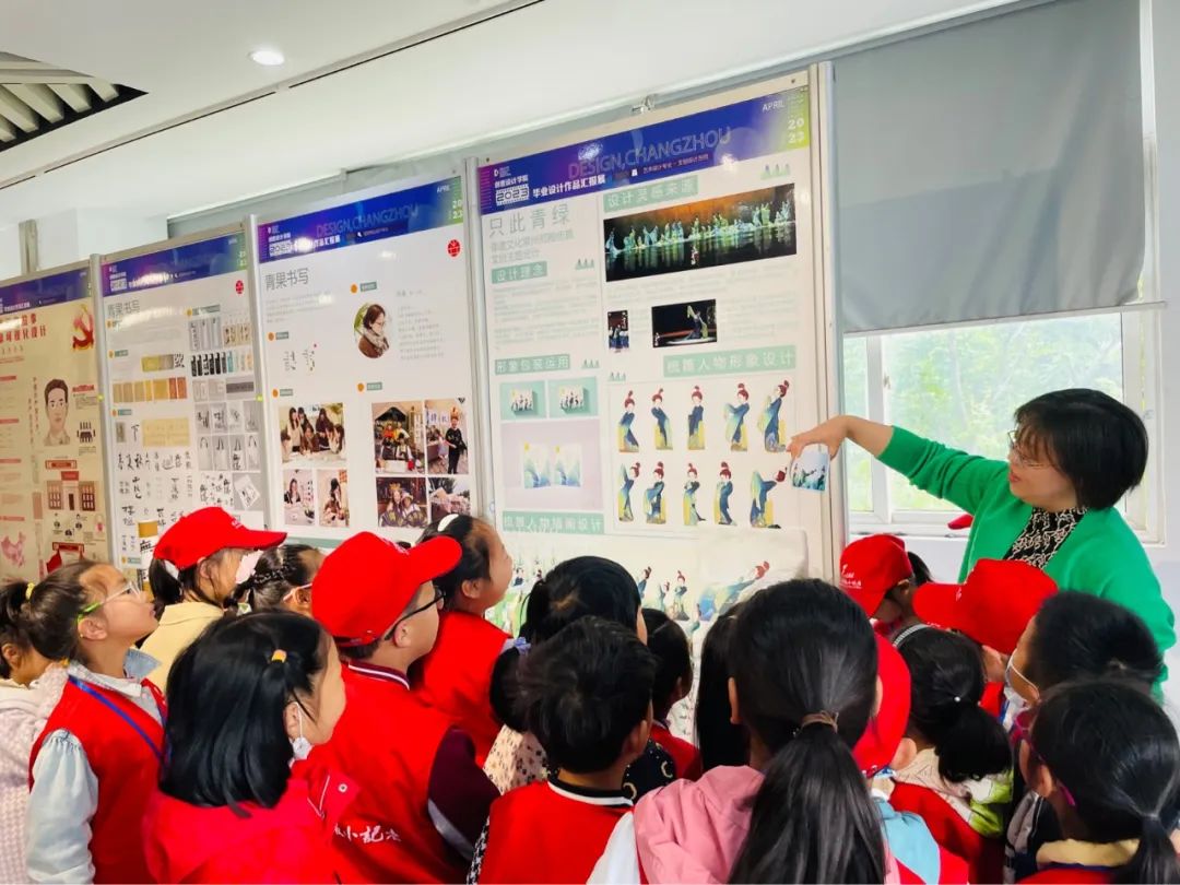 为帮助小记者深入了解家乡运河文化,领略非遗无穷魅力,五一期间,现代快报小记者工作室邀请常大附小、怀德苑小学、湖塘桥第二实验小学部分小记者,走进常州机电职业技术学院创意设计学院,在宗怡老师(创意设计学院党总支副书记)和祁峥老师(大运河项目主创老师)的带领下,参观大学生毕业设计作品展,开启研学之旅。