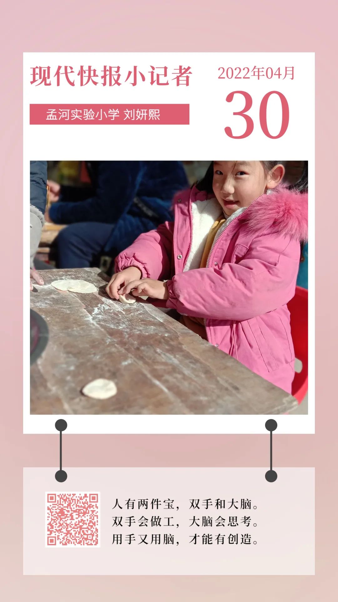 今天的主角是来自孟河实验小学的刘妍熙小记者,她最喜欢的一句话是:“人有两件宝,双手和大脑。双手会做工,大脑会思考。用手又用脑,才能有创造。”