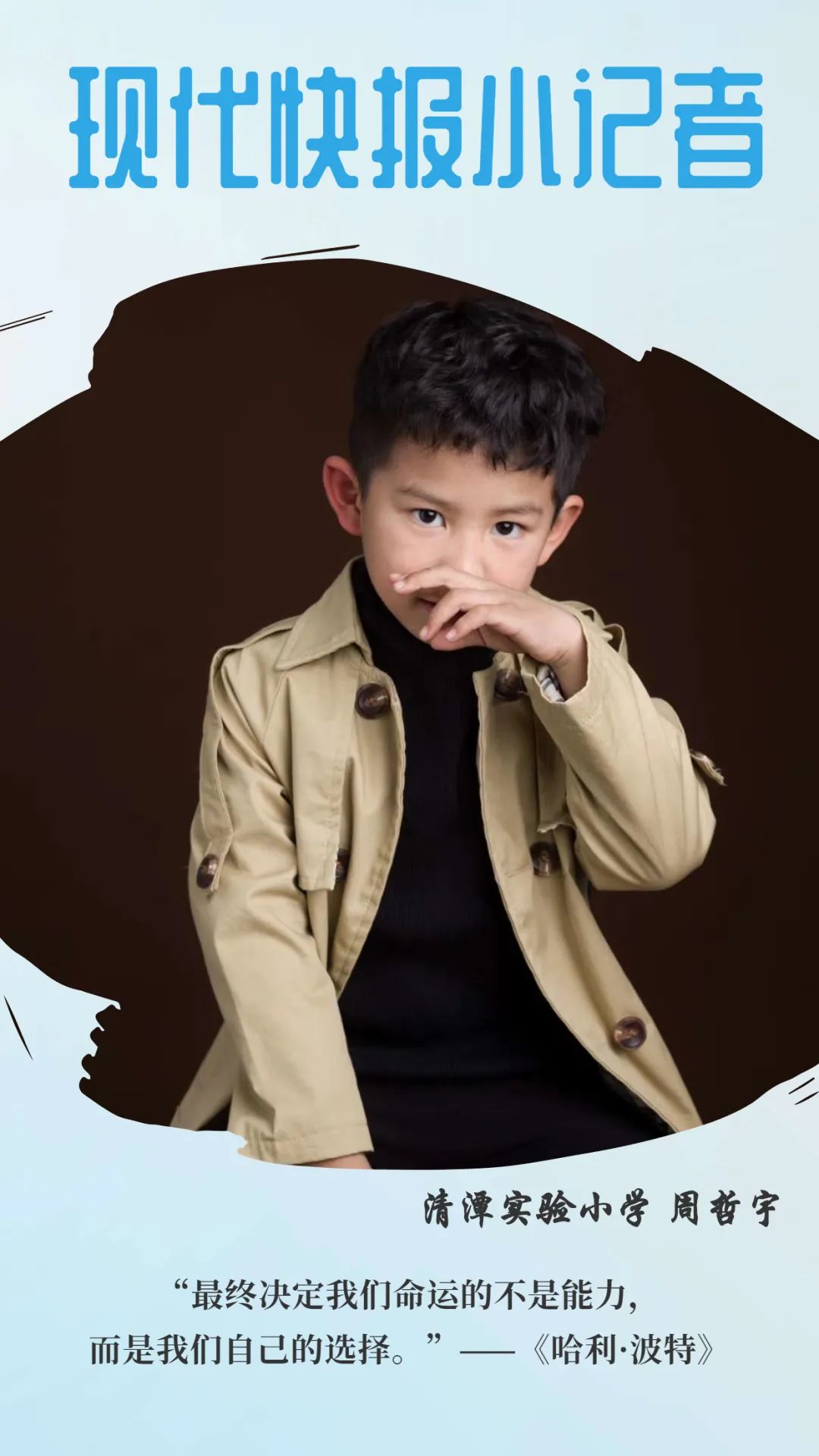 今天的小主人公是来自清潭实验小学的周哲宇小记者。“最终决定我们命运的不是能力,而是我们自己的选择”是小记者最喜欢的一句话。