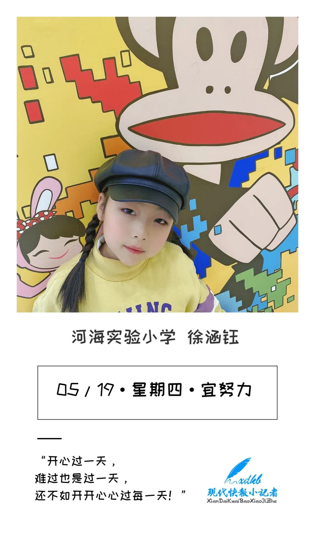 徐涵钰小记者参与活动积极,在活动中也能勇于突破自己,非常棒,为你点赞。“不管在哪,我们都是以快乐为最终目的而为之奋斗”,希望我们的徐涵钰小记者可以一直收获开心与快乐。快报小记者工作室祝你的快乐像水一样流入心里,在学习生活中也继续保持优秀,德智体美劳全面发展。