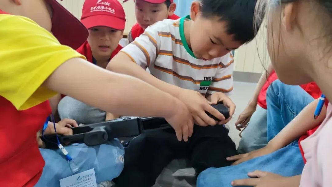 枪!”“枪里有子弹吗?”“那个弯弯的是什么啊?”小记者们看着模型步枪按捺不住自己的激动心情,纷纷起身,教官为小记者们介绍部队95式突击步枪的持枪姿势和拆解还原方法,小记者们看得入了神,迫不及待地想要拿上步枪体验英姿飒爽。