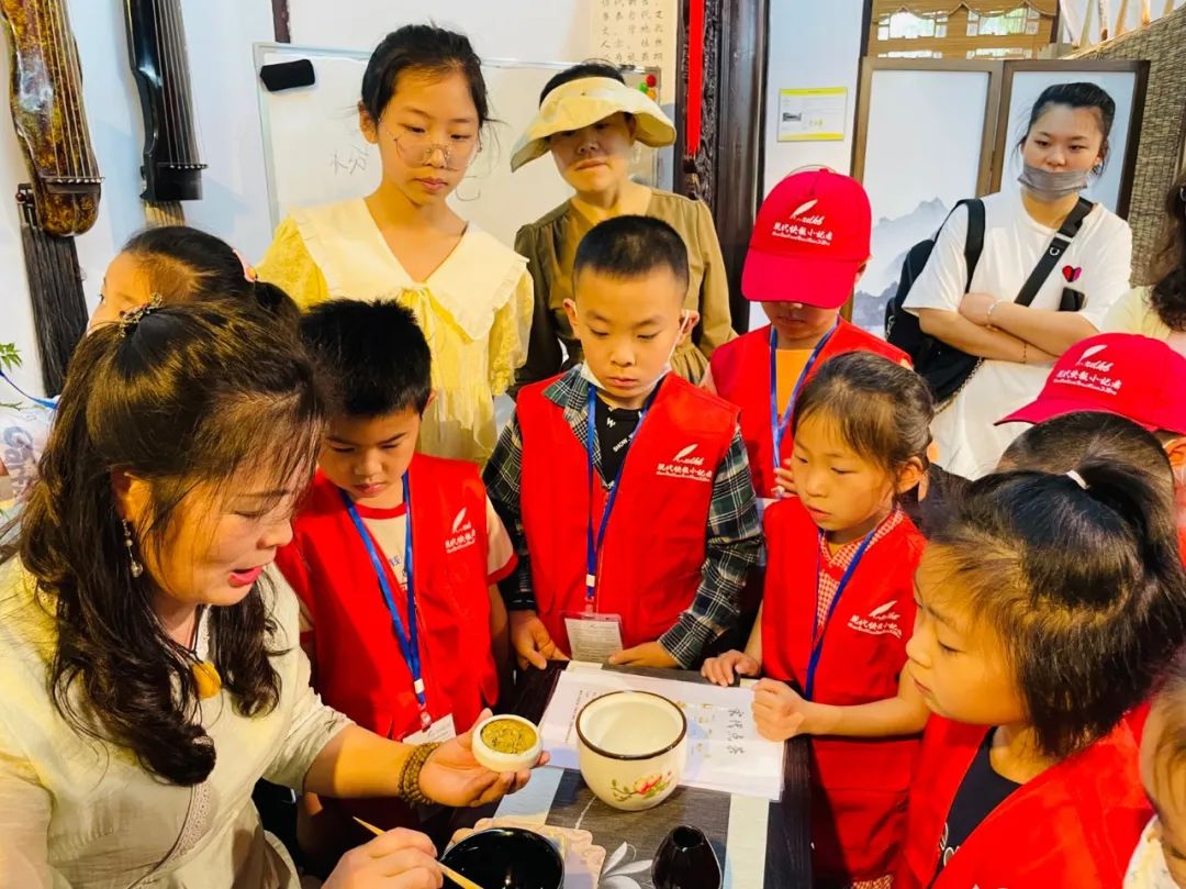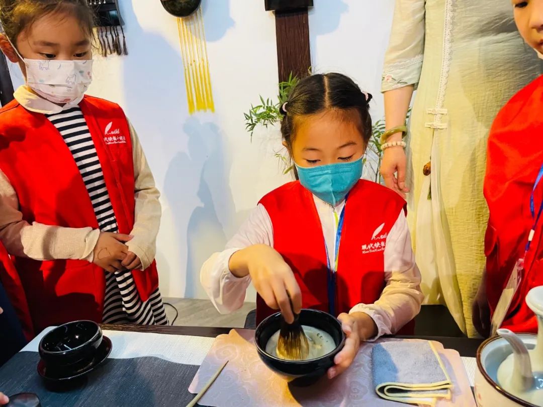 接下来,小记者们体验在茶上写字、绘画。有的画山,有的画太阳,有的写下自己的姓氏……小记者们一一构思,上台体验,其乐融融。本次活动,小记者们认识到中国茶文化的博大精深,领略到宋代点茶文化的魅力,共同度过了一个快乐又有意义的国际茶日。
