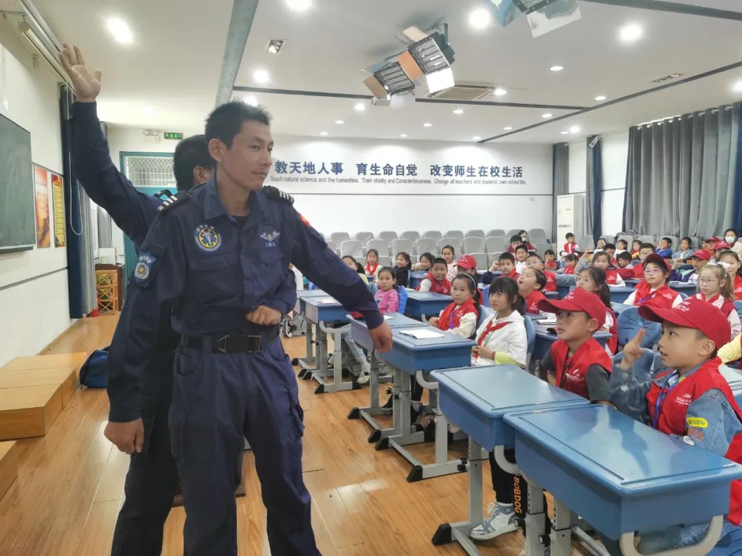 “水越深就越冷,一旦在水中抽筋,如何自救?”,“河流,水库,有涨落潮的岸边……这些水体各自有什么险情?”,“如果已经被溺水者拉住,应当怎样反应?”队员们用一个个身边发生过的溺水案例开场,为小记者们介绍水体特点,自救姿势等防溺水知识。