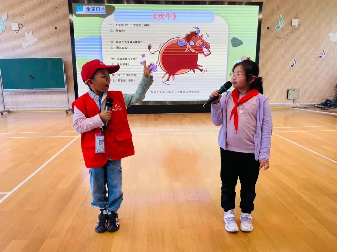 实践出真知,让我们开启相声初体验吧!小美老师现场教学,“学生甲,学生乙,上台鞠躬……”小记者们分为两组,学习相声《吹牛》节选。随后小美老师还邀请小记者上台表演相声《吹牛》,大家纷纷踊跃举手,都想一展风采!