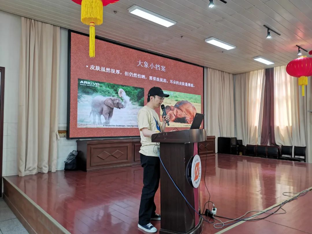 “大象为什么要吃土呢?”,小记者们十分纳闷,何博士结合自己做研究时的亲身经历,以幽默、生动的语言告诉小记者这土里的“奥秘”,原来啊,大象吃土是为了补充身体里的盐分,小记者们了解之后感到十分新奇。随后,何博士也和大家分享了大象群居特征、大象基因研究、盗猎给大象带来的危害等。