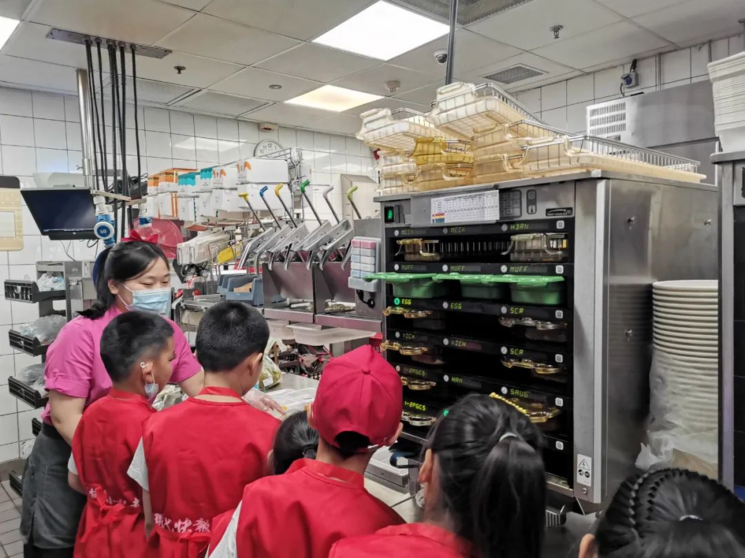 工作人员为小记者们介绍了后厨里每一个板块具体是制作哪一类食物,小记者们近距离了解到平时吃的麦当劳是怎样的制作流程。