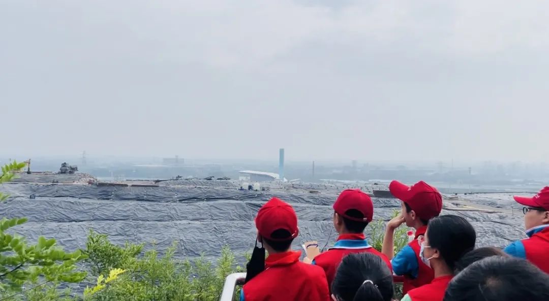 常州市生活废弃物处置中心,也称“垃圾卫生填埋场”,位于武进区雪堰镇浒庄村夹山南麓。讲解员带领小记者们登上观景平台,一览填埋场全景。讲解员向小记者们介绍如何进行垃圾无害化卫生填埋。