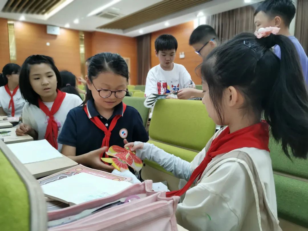 当闻老师拿出比巴掌还小的风筝,小记者们纷纷惊呼“真的比我手还小的风筝。”纷纷伸出自己的小手与风筝对照。薄如蝉翼的沙燕风筝让小记者们爱不释手,想要一探究竟。